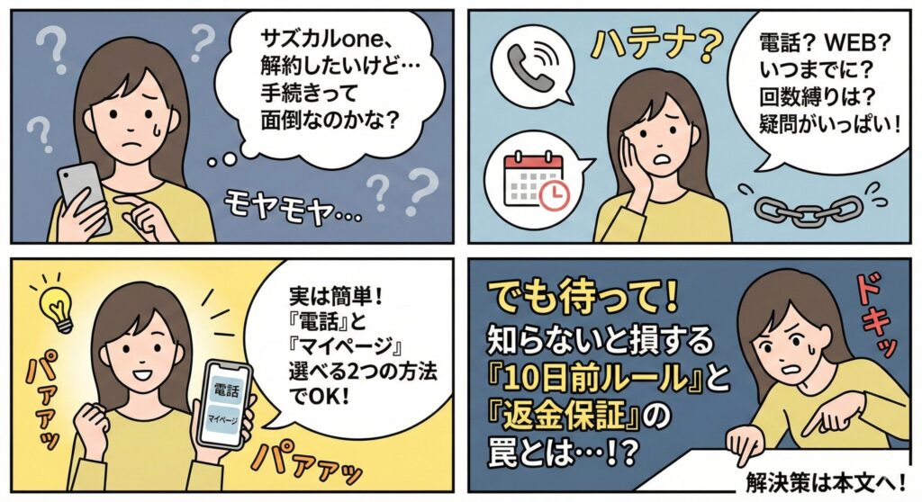 サズカルone解約方法は2つ!解約前の3つの注意点も解説!