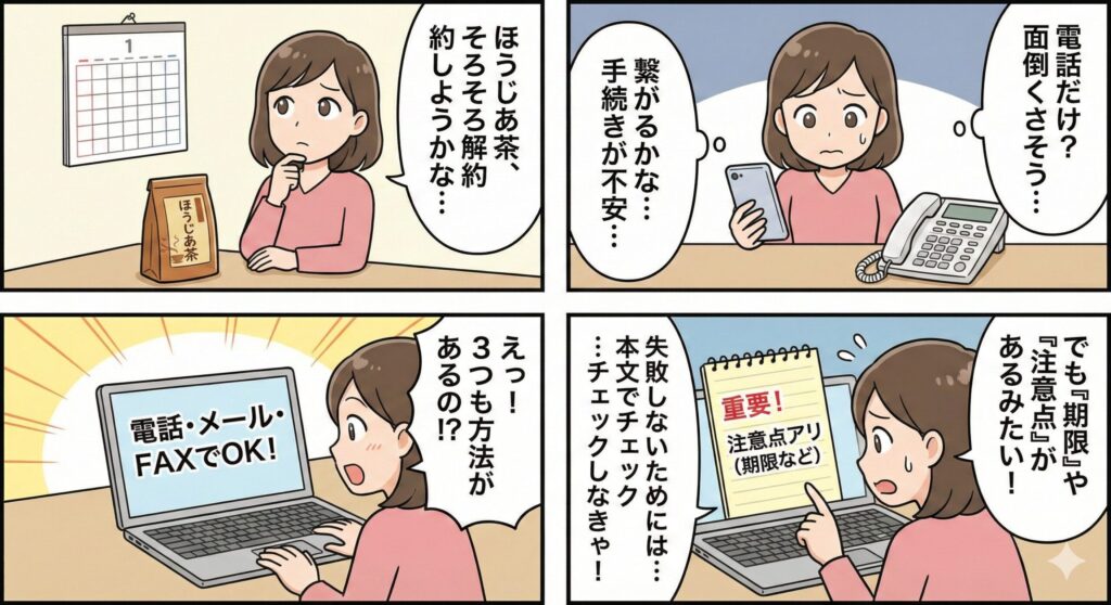 ほうじあ茶は解約方法は?定期便の解約手順と3つの注意点を紹介!